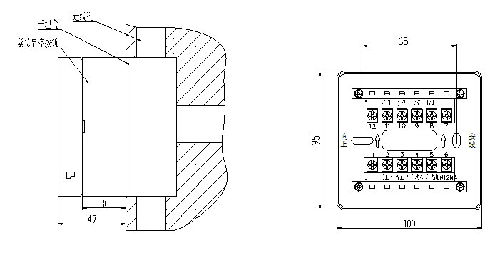 啟/停按鈕上蓋與底殼之間采用插接方式,采用明裝方式,安裝時應注意方向。安裝時可將底殼安裝在標準預埋盒上,安裝方式及安裝孔距如下圖所10.6所示: